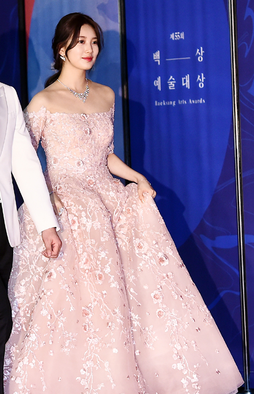 Where Suzy never disappoints is at events as very few can top the way she radiates and these are some of the top pics of the year. On May 1st she was at the 55th 'Baeksang Arts Awards' ceremony which was held at CEOX in Seoul. First batch of pics are from the red carpet while the others are of Suzy on stage as one of the show's emcees. The award show is for Korean films, TV shows and the theater, obviously being in no dramas last year meant she wasn't up for any awards though she did win an acting award the previous year. Whew, these are some truly perfect pics and perhaps she does have the inside track of being this year's #1, after the pics is a short video of the event.